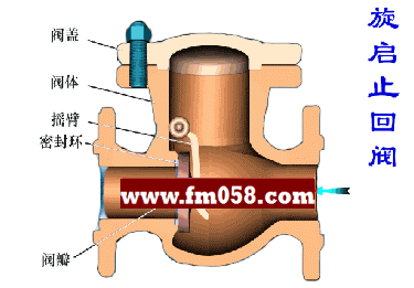 7、旋啟式止回閥的安裝位置不受限制,它可裝在水平、垂直或傾斜的管線上,如裝在垂直管道上,介質(zhì)流向要由下而上;