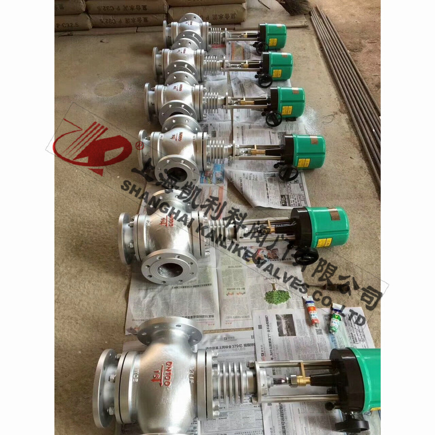 三通調節閥閥芯結構為圓筒型薄壁窗口形閥芯,采用閥芯側面導向與閥座內表面導向和上襯套導向,因此導向面積大,工作可靠。流體對閥芯作用方向都處于流開狀態,故閥工作性能穩定。三通調節閥有三通合流式調節閥(把兩種流體經三通閥混合成一種流體)和三通分流式調節閥(把一種流體經三通閥分成兩路流出)兩種形式。當公稱通徑DN≤80mm和壓差較小的場合時,分流閥可以采用同口徑的合流閥代替。流量特性有直線性、拋物線性兩種。三通調節閥它可以代替二臺同時使用的二通調節閥,起分流或合流作用及兩相調節配比作用。
